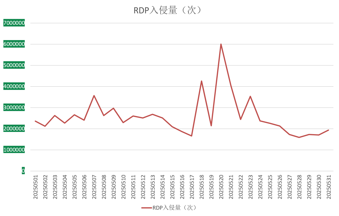 图7. 2025年5月监控到的RDP入侵量