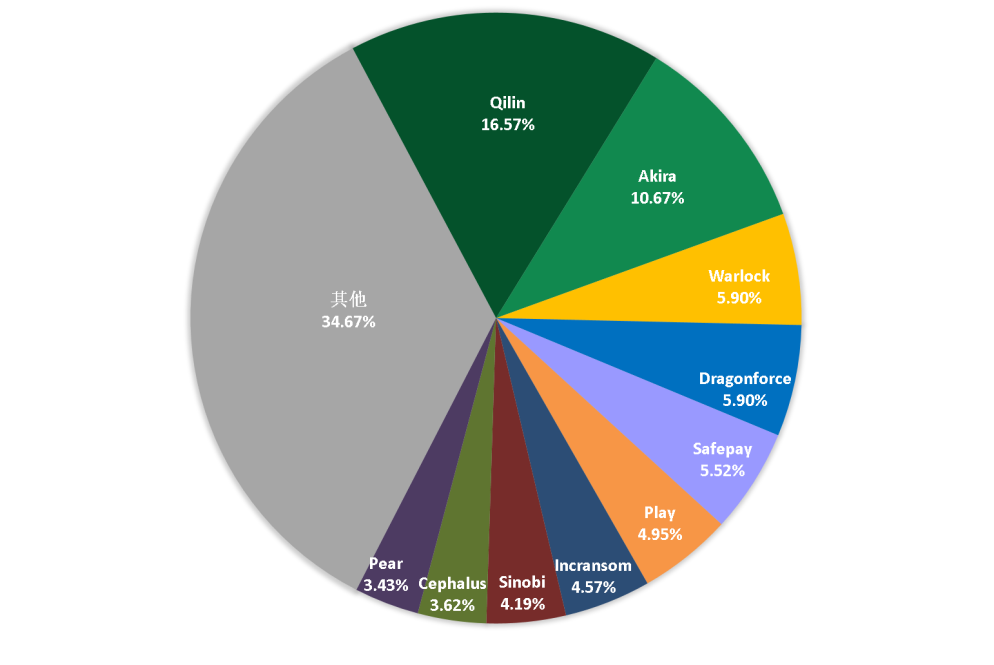 图4. 2025年8月通过数据泄露获利的勒索软件家族占比